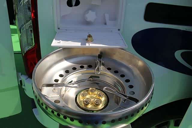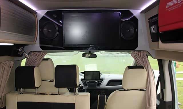 并配备了液晶电视、音响系统、车载冰箱、驻车空调、微波炉、电磁炉、便携式马桶等生活电器配置。