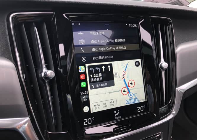 此外,S90除了系统自带的原始功能之外,可以通过苹果CarPlay系统,镜像车主苹果手机中的若干App(如苹果自带导航、网易云音乐等)。