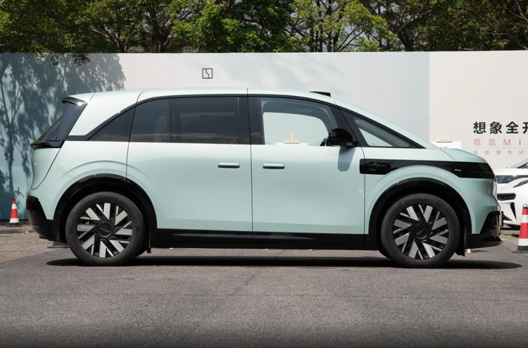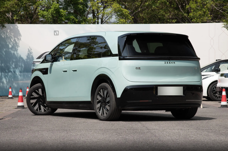 在车身侧面看,ZEEKR MIX的A柱倾斜角很大,延伸到前门位置的头灯组有一种非常个性的感觉,让它看起来辨识度很高。当然,双拼色车身和低风阻轮毂,同样是它的加分项,能够让人感受到很强的潮流感。相比之下,ZEEKR MIX的车尾设计更加朴素一些,虽然也采用了大面积的黑色材料装饰后包围,但并没有太多花哨的设计元素。而且它的尾灯融入后挡风玻璃,看起来整体感很强,能让人印象深刻。