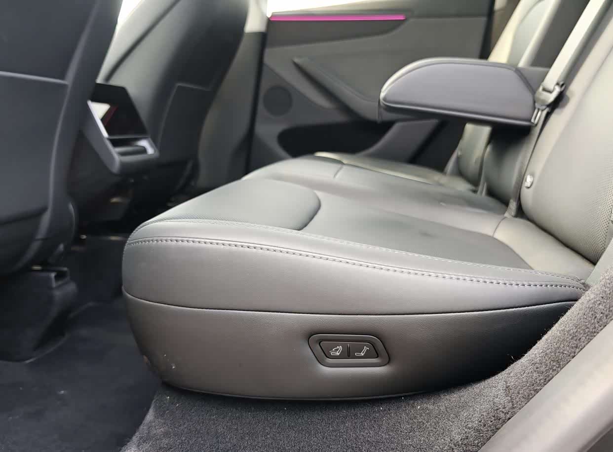 3.电动调节与一键放倒的后排座椅: 后排座椅的电动折叠功能是焕新版的一大亮点。不仅可以通过中控大屏操作,在后备箱侧面也设置了物理按键,轻轻一按即可实现后排座椅的电动放平,瞬间拓展出巨大的装载空间,秒变“大床房”,露营或搬运大件物品极其方便。后备箱本身容积已属优秀,下方还有巨大的隐藏储物空间,体现了特斯拉电机高度集成化的优势。内部大量植绒或软布包裹也提升了质感和静音性。