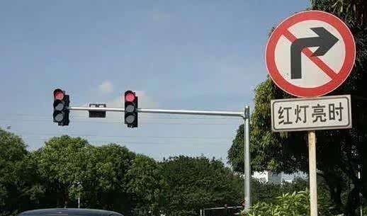 不过,也不是所有的直行圆灯时,车辆都可以右转。有些路口情况比较特殊,会设有红灯禁止右转的指示牌。那么遇到这些情况,也是要遵循“红灯停,绿灯停”的原则,或者按照指示牌指示通行。