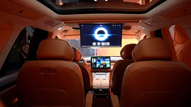 鸿蒙座舱5的系统反应很快,车内拥有多达10块屏幕,包括55英寸AR-HUD、21.4英寸二排吸顶屏,导航、观影都很方便,还支持自然语言交互,比如设定“电量低于20%自动找充电桩并开空调”,系统能联动执行。