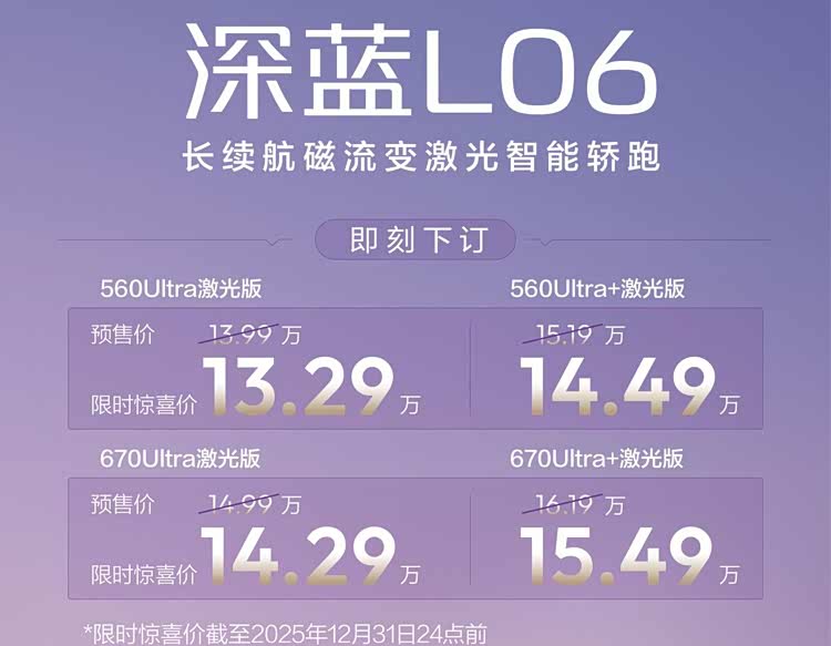 从预售到上市,深蓝L06以“配置平权”打破市场惯例,将磁流变悬架、3nm芯片、激光雷达等高端配置全系标配。13.29万起的价格与丰厚权益,叠加全维越级的产品力,有望在竞争激烈的新能源市场实现突围,为年轻家庭用户提供更优选择。