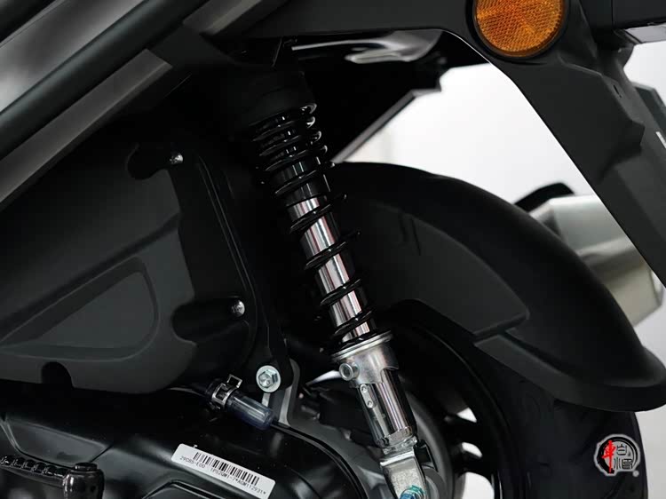 硬件方面,减震系统采用前正立式前叉 + 后单枪侧置预载可调避震,配置取向以实用为主,能有效过滤铺装路面小颠簸。刹车系统采用前盘后鼓配置,前220mm单盘双活塞卡钳,前轮配备博世第十代单通道ABS系统,能有效防止车轮抱死,大幅提升紧急情况下的稳定性。后轮鼓刹制动线性,日常通勤足够使用。