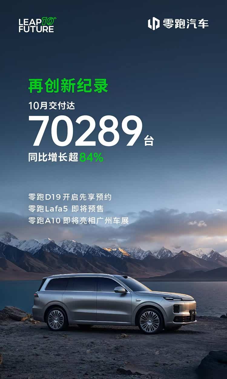 正所谓窥一斑而见全豹!在刚刚过去的10月份,零跑品牌的月销量再次创下新高,达到了7万辆的规模。作为对比来看,其他几家主流的新势力车企,目前的销量规模都徘徊在4万辆左右。与其他几家动辄三四十万的产品定位不同的是,零跑一直在深耕十万级别的主流汽车消费市场,并通过纯电+增程两条腿走路的方式,获得了更大体量的潜在用户群体。