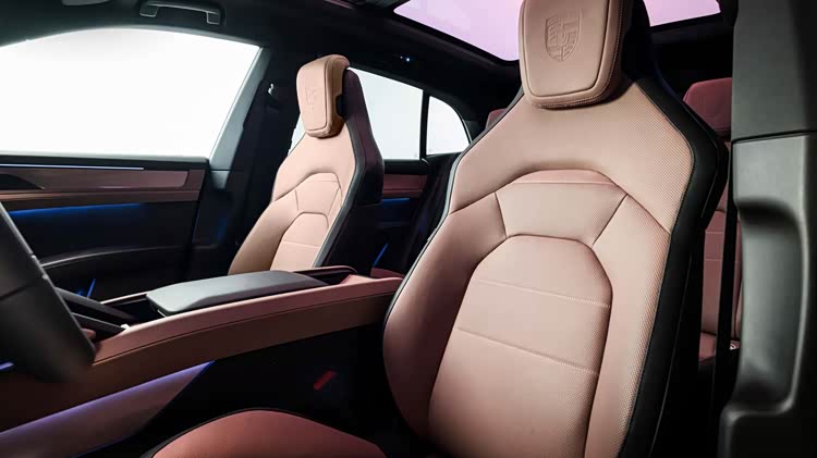 座椅保持着运动风格,兼顾了舒适性和包裹性,头枕带有品牌LOGO压花。后排座椅支持独立电动调节,可惜腿部空间很一般,也就是个中型SUV的水平,而且中央地台还是像燃油车一样有明显凸起。