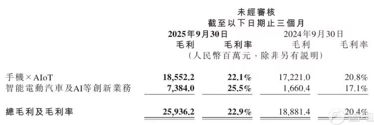 此前,小米集团发布的2025年Q3财报显示,本季度小米集团总营收1131亿元,连续4个季度超千亿,同比增长22.3%;经调整净利润113亿元,同比增长80.9%。智能电动汽车及AI等创新业务收入290亿元,当季新车交付108796台。研发投入91亿元,同比增长52.1%,预计全年投入超300亿元。研发总人数24871人。