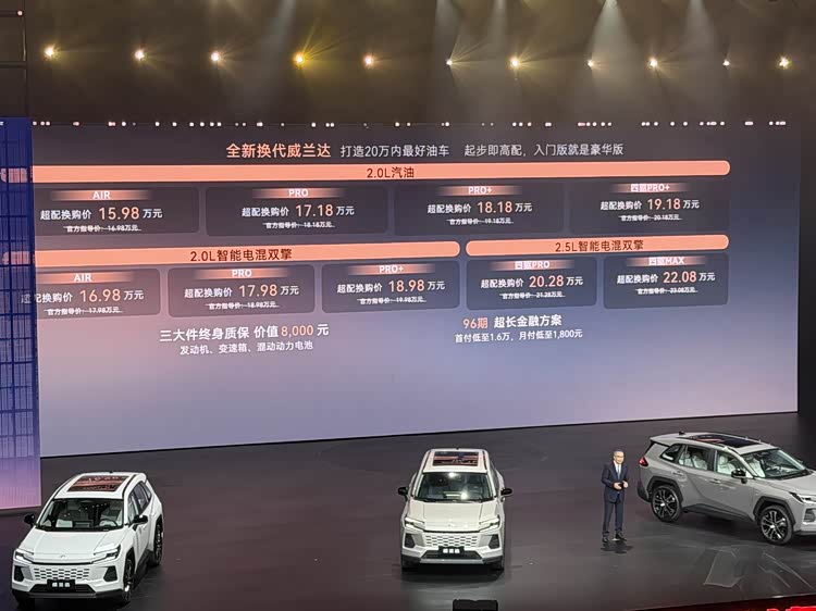 11月20日,电哥在现场关注广汽丰田全新 威兰达(参数|询价)正式上市,新车共推出9款车型,售价区间为16.98-23.08万元,换购价区间为15.98-22.08万元。