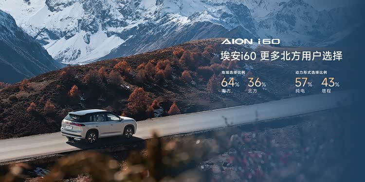 北方用户的增加也是i60用户群体的一个显著特点,其中北方用户人群占比36%、增程车型占比43%。受限于气候条件,北方用户对选购纯电车始终有顾虑,而埃安i60提供增程+纯电双动力选择,很好地解决了北方用户的痛点。埃安i60搭载的广汽星源增程,率先在10万级增程领域实现亏电低油耗、强动力、低噪音,带来无限接近纯电的驾驶体验。此外,210公里CLTC纯电续航和3C快充,也给北方用户的日常通勤成本更低、更便利。