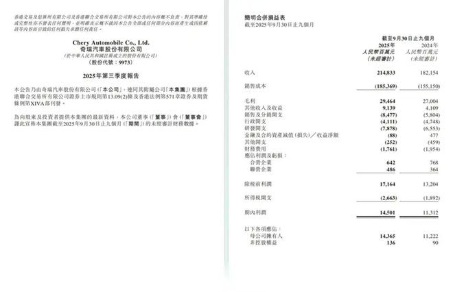 当汽车行业还在“增收不增利”的泥潭里挣扎时,奇瑞汽车在广州车展前悄悄甩出了上市后的首份成绩单——2025年前三季度的财报:2148.33亿元营收、143.65亿元净利润,同比分别大涨17.94%和28%的数字……,一组“反常”的数据,打破了行业的沉闷。