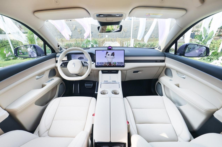 环抱式座舱以驾驶者为中心,扇形布局让操控动线更流畅。10.25英寸全液晶仪表与15.6英寸2K中控屏组成科技感十足的交互组合,90%屏占比的中控屏成为智能交互核心,独特的星环散射体设计则为座舱融入艺术气息。Nappa纹真皮、全水性皮质与木纹材质的运用,不仅触感柔软,更彰显出越级的豪华质感。