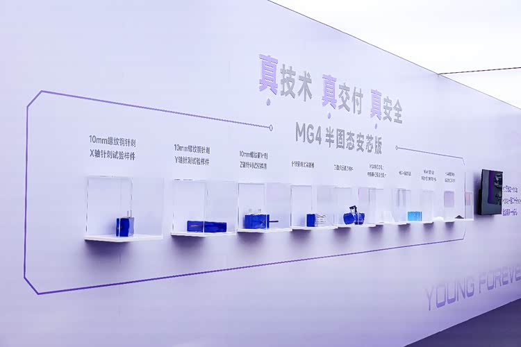 MG携手国家级权威测试机构中汽中心,对全新MG4搭载的半固态电池进行了行业最严苛的安全测试,包括螺纹钢穿刺、三向极限挤压、盐水浸泡、极寒冰冻、底部球击以及高温火烧等极端工况的终极检验。本次测试都超行业最高标准至少20%,大幅超越最新国标,以超强安全实力守护安心出行。