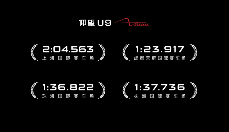此前,仰望U9X便以496.22km/h的极速成绩,刷新全球汽车极速纪录,并且在纽博格林北环赛道以6分59秒的成绩“屠榜”,成功刷新量产电车圈速纪录。本次车展上,仰望汽车公布了仰望U9X征战上海、珠海、株洲、成都四大国内知名赛道的成绩,全部刷新了所在赛道的量产车圈速纪录。