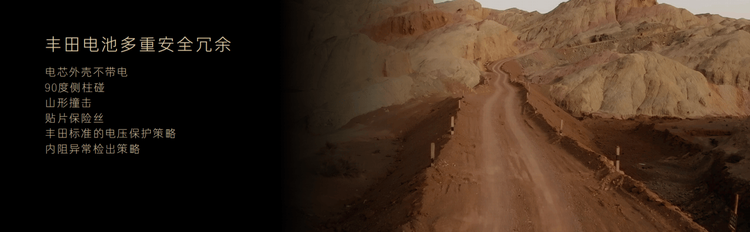其中,车内车外门把手均配备双重解锁机制,将所有门把手机械+电动二合一,使门把手具备安全冗余设计,极端情况下断电依旧可以利用机械方式打开。车身采用碰撞安全冗余设计,做到行业唯一90°侧柱碰后电池0侵入0起火,丰田还首创超国标“山形碰撞测试”用于验证电池底部碰撞安全。电芯四重防护、电池四层防热扩散、电池上盖特殊设计和广丰反向驻场育成电池供应商,这些均是针对电池壳体和电芯安全的冗余设计与做法。
