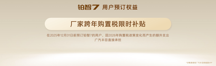 11月21日,广州国际车展开幕首日,丰田鸿蒙座舱豪华旗舰D级纯电轿车——铂智7迎来“开门鸿”,新车信息首次全量发布。同时,新车同步开启预定,并承诺凡是12月 31日前预定铂智7的用户,因2026年购置税政策变化而产生的额外支出,广汽丰田直接承担!