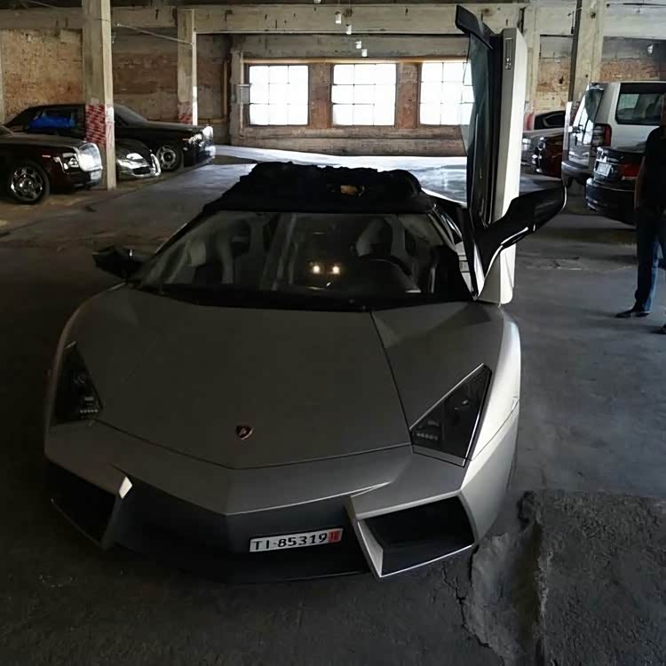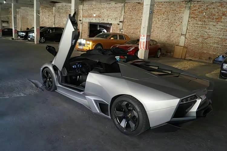 这个车库可谓不一般,里面停着宝马7系、路虎发现4、劳斯莱斯幻影、劳斯莱斯幻影敞篷车、宾利Azure,不可思议的还有布加迪威龙,不过今天的主角不是布加迪,而是 兰博基尼雷文顿(参数|询价),整个俄罗斯仅有2辆,这是其中一辆。