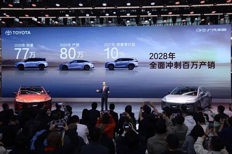 在广州车展发布会上,广汽丰田执行副总经理文大力表示,通过研发体制改革、电车站稳脚跟、油车持续进化,广汽丰田争取用三年时间,重回百万产销。他提出,2026年广汽丰田销量要突破80万辆,2027年同比增长超过10%,2028年全面冲刺百万产销。
