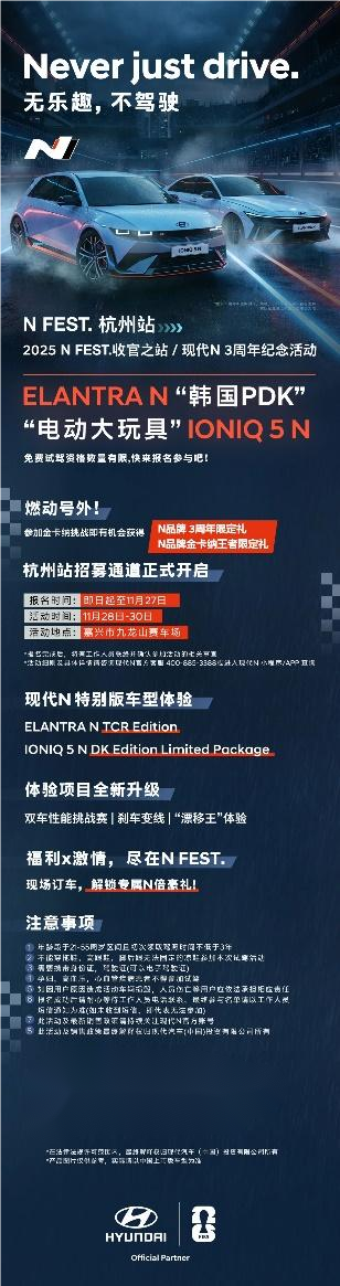 未来,现代汽车N品牌将继续秉持“Never just drive”的理念,持续完善在中国的N品牌生态建设与服务,并为中国消费者带来更多丰富多彩的体验活动。
