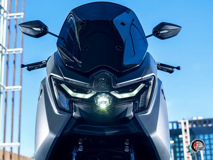 整车延续NMAX系列标志性的运动轮廓,通过紧凑的车身比例与流畅线条维持着家族化设计语言。前脸采用“M”造型灯组,两侧融合带有双闪光功能的转向灯,造型复杂且富有科技感。车身侧面通过立体棱线勾勒出向前俯冲的动势,进一步强化整车的运动气息。新款车型配色方面提供的午夜黑与石墨灰两种配色方案,均以低调耐看为主要取向,漆面质感细腻。