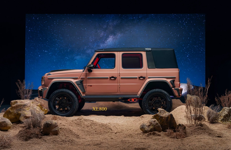 作为全球最顶级的敞篷车之一,800车型还配备了定制尾门、Widestar宽体套件、24英寸的Monoblock ZM轮毂以及定制的韩泰Ventus S1 Evo ZX高性能轮胎,还配备了运动弹簧,可以随时将车身高度降低20-40mm。XL800车型则配备了定制的门式车桥悬挂系统,能够在极端条件下,仍然保持最大的牵引力和稳定性。轮毂选用了22英寸的Monoblock Z-HD“PLATINUM EDITION”高端轮毂,并配备全地形轮胎,为了保证更佳的越野性能,还提供了480mm的离地间隙。