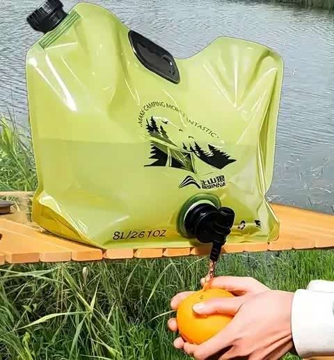 使用折叠水袋替代传统水箱能节省不少空间和成本,再加上电动抽水器,让你的露营生活更加便捷。