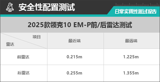 测试车辆:2025款 领克10 EM-P 240四驱Ultra