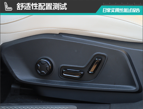 在主驾驶座椅测试中,评测车的驾驶座椅最前端和最末端之间的距离为260mm,处于同级别上游水平,座椅可调节行程较为宽泛。