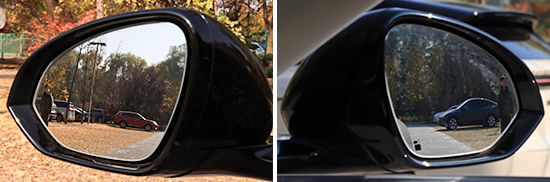 评测车的左/右外后视镜均采用普通镜片,经实测,左、右外后视镜视野范围分别为25°和18.4°,在测试过的同级别车型中分别处于中下游和下游水平。