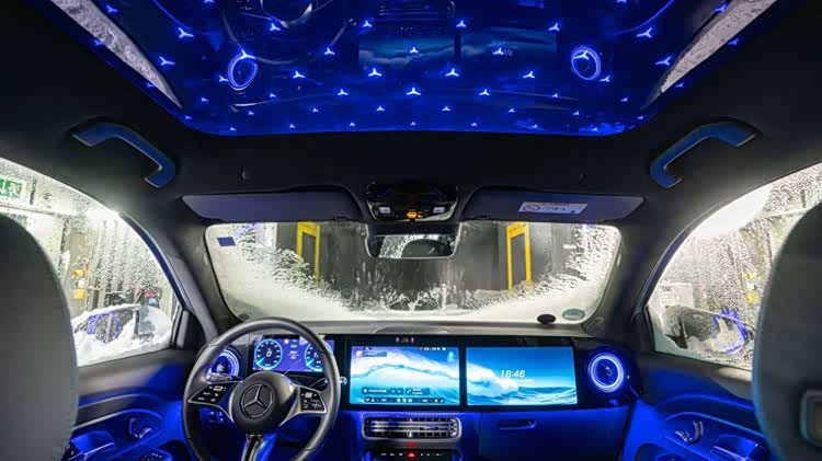 此外,车顶标配全景玻璃天窗,可以选装可点亮的星空灯效,从透明切换至不透明只需几毫秒。另外这个车顶玻璃采用隔热夹层安全玻璃与红外反射涂层,能确保夏天车内不暴晒,冬天减少热量流失。