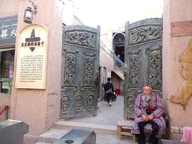 接下来,我们穿过吐曼路,来到了高台民居景区。高台民居是喀什古城最具特色的老城区之一,这里的老房子依山而建,层层叠叠,极具视觉冲击力。房屋大多采用土坯、砖块建造,墙壁上布满了岁月的痕迹,门窗的雕花精美依旧,展现了当地居民的建筑智慧和审美情趣。我们沿着狭窄的小巷穿行在老房子之间,感受着这里的宁静与古朴。站在高处,还可以眺望到喀什古城的全景,与城楼上看到的景色截然不同,别有一番风味。这里的每一座老房子都承载着一段历史,每一条小巷都藏着一个故事,让人仿佛置身于时光的隧道之中。