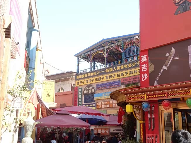 原本计划前往昆仑塔看日落,感受夕阳下古城的别样美景。然而,当我们抵达昆仑塔下时,却发现排队的人络绎不绝,队伍长得望不到尽头。考虑到爬上昆仑塔时已经错过了落日,我们不得不放弃这个计划,虽有遗憾,但也为此次旅行留下了一丝念想。带着些许遗憾,我们再次回到了喀什古城,准备欣赏古城的夜景。夜幕降临,古城被灯光装点得格外美丽。沿街的路灯、店铺的霓虹灯交相辉映,将古城变成了一个灯的海洋。街道上依旧人来人往,游客们在灯光下漫步、拍照,一派热闹祥和的景象。