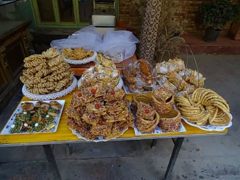就在我们沉浸在购物的乐趣中时,一家没有招牌的馕制作作坊吸引了我的目光。作坊的门敞开着,里面热气腾腾,几位工人正在忙碌着。我们好奇地走了进去,只见一位师傅正将发酵好的面团放在案板上,熟练地揉搓、按压,随后用特制的工具在面团上戳出一个个小孔,再撒上芝麻、洋葱碎等调料。另一位师傅则将处理好的面饼贴在滚烫的馕坑壁上,不一会儿,馕坑内便飘出阵阵诱人的香气。大约十几分钟后,金黄酥脆的馕被师傅用长柄铁钩勾了出来,一个个圆鼓鼓、香喷喷的馕整齐地摆放在大厅里,让人垂涎欲滴。据师傅介绍,这里的馕有多种口味,包括原味、芝麻味、洋葱味等,而且都是需要提前预定的。想到即将离开喀什,便决定在这里预定10个馕,带回去送给北京的亲朋好友,让他们也能品尝到喀什的特色美味。