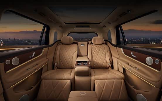 当需要接待重要客户时,一键切换至“尊四座模式”,车辆瞬间化身为私密、尊贵的“移动头等舱”。副驾后排的零重力座椅,其靠背最大躺角可达155°,腿托实现4向精准调节和85°的最大展开角度,将人体的疲惫感降到最低。升起智能隐私车窗,窗外喧嚣隔绝,车内便是一个专属的洽谈或休憩空间。客户在途中获得的不仅是行程的送达,更是一段被极致尊重与呵护的体验。这份由智能空间带来的从容与尊贵,重新定义了豪华商务出行的质感。