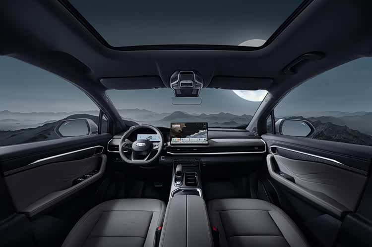 新车提供皓月白、星空黑、远峰灰、雪山银四种源于天地万象的车色,内饰则配备暖阳棕与月影灰两种配色,共同织就一幅流动的天地色谱。