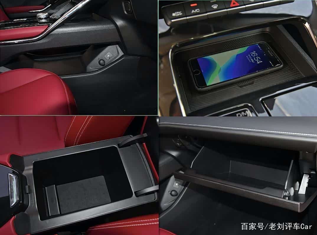 坐到驾驶席就感觉车内质感达到了30万级别的水平,内饰线条非常简洁,同时运用了多种颜色和材质的搭配,营造出了特别出色的质感。两块屏幕,中间是12.3英寸的中控触摸屏,正前面还有一个10英寸的全液晶仪表屏幕。这款车型还有一个亮点,就是增加了个10英寸的HUD全彩色抬头显示器,三块屏幕之间可以进行互动,让驾驶者在开车时能够保持视线看向前方,确保行车安全。方向盘样式是全新的设计,搭载了换挡拨片,手感非常饱满。中间操控台部分造型简洁、精致,前面设置了上下两个镂空的设计,最大限度地进行了空间利用。旋钮式电子换挡也是时下比较流行设计,前面是一个储物盒,里面可以进行手机的无线充电,在开车时手机很顺手的放在上面,非常方便。