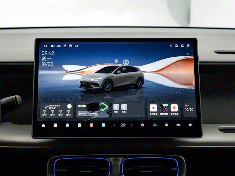 零跑Lafa车内采用8.8英寸全液晶仪表+14.6英寸中控屏的组合,使用了Leapmotor OS 4.0 Plus车机系统,内置骁龙8295P座舱芯片,搭载DeepSeek和通义千问双AI大模型,包括大量的软包材质、256色氛围灯等都进一步提升了内饰的档次感。
