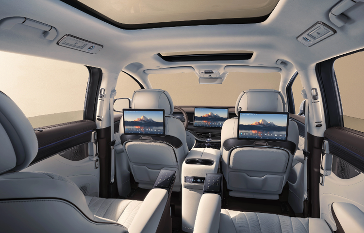 最打动家庭用户的是座椅配置:第二排 Air SPA 双零重力座椅支持 152° 超大靠背角度,16 点式按摩 + 通风加热,一键切换零重力模式,长途乘坐堪比移动按摩椅;第三排更是同级标杆,不仅支持前后、靠背调节,还配备了通风加热功能,520mm 长的座垫完全能支撑成年人的腿部,180cm 乘客坐进去膝盖还有一拳余量,再加上三组儿童座椅接口,家庭出行的舒适性直接拉满。此外,7.5L 智能冷暖冰箱支持 - 6℃~50℃调节,断电保温 12 小时,二排一体式双桌板能满足办公、用餐需求,这些细节设计真正做到了 “座座皆奢享”。