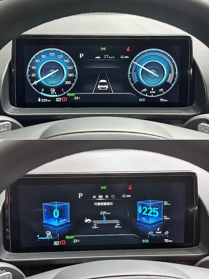 虽然身为品牌的入门纯电车型,不过 Inster 车系的配备设定亦可算是相当丰富,全车系标配了 10.25 吋数位仪表以及 8 吋中央触控荧幕,其中 10.25 吋数位仪表除了可依驾驶模式提供三种不同的仪表显示模式外,亦具备了独特的 Cube 方块显示模式,包含时速以及续航里程皆以透明的方块动画方式显示,显得相当具有趣味,中央区块部分则为多功显示屏,可透过方向盘上方的按键进行切换显示以及设定功能。