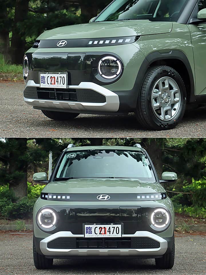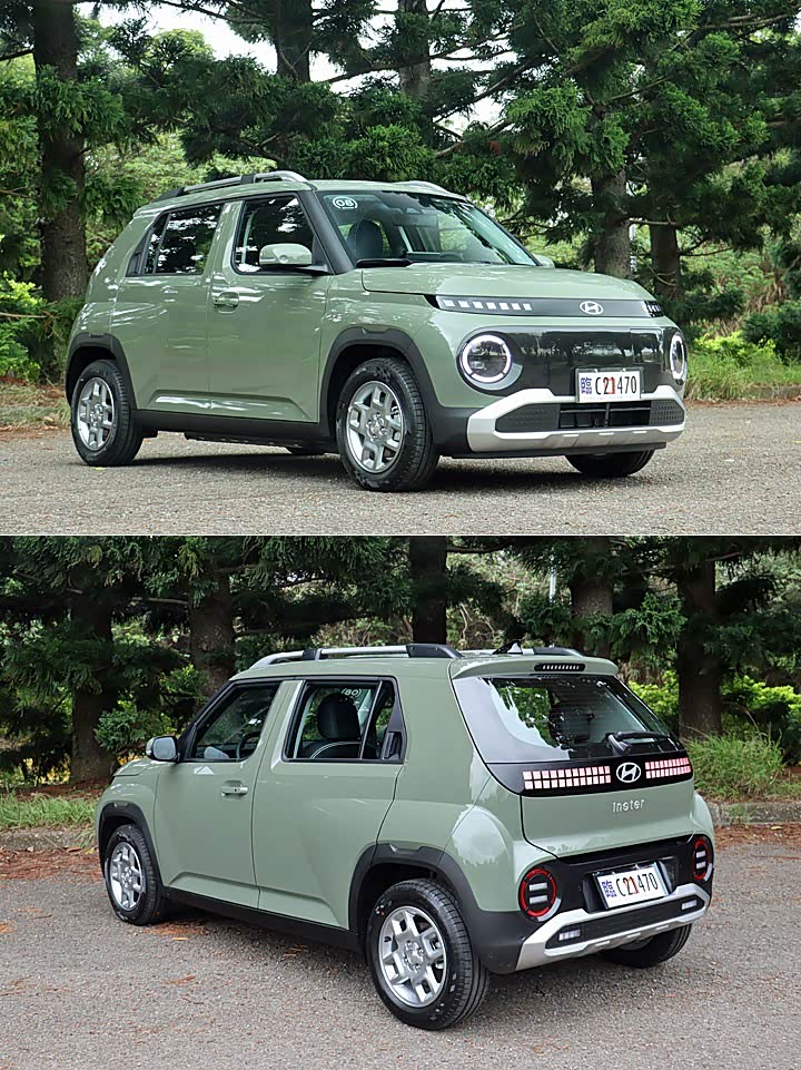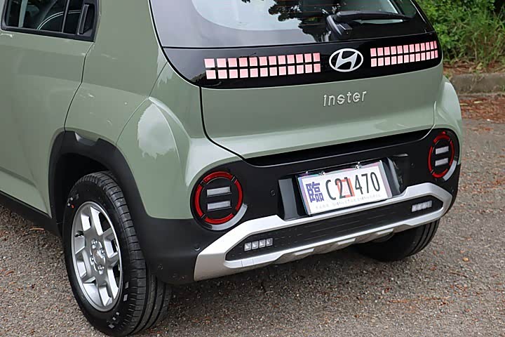 就外观上看来,现代Inster 车系的确具有辨识度相当高的独特外观设计,其中包含了整合圆形 LED 昼行灯的头灯组、大面积车头黑色饰板、Pixels 数位像素造型前方向灯及后尾灯设计,黑色轮拱以及前后银色下护板的设计。此外手动开启式的充电孔盖亦整合在车头黑色饰板中,而后车门把亦刻意设计在后窗框位置,藉此塑造出类似双门车款的车侧视觉效果,至于消光黑涂装 A 柱及车顶行李架的配置,则是为外观增添了更多个性化的造型点缀。