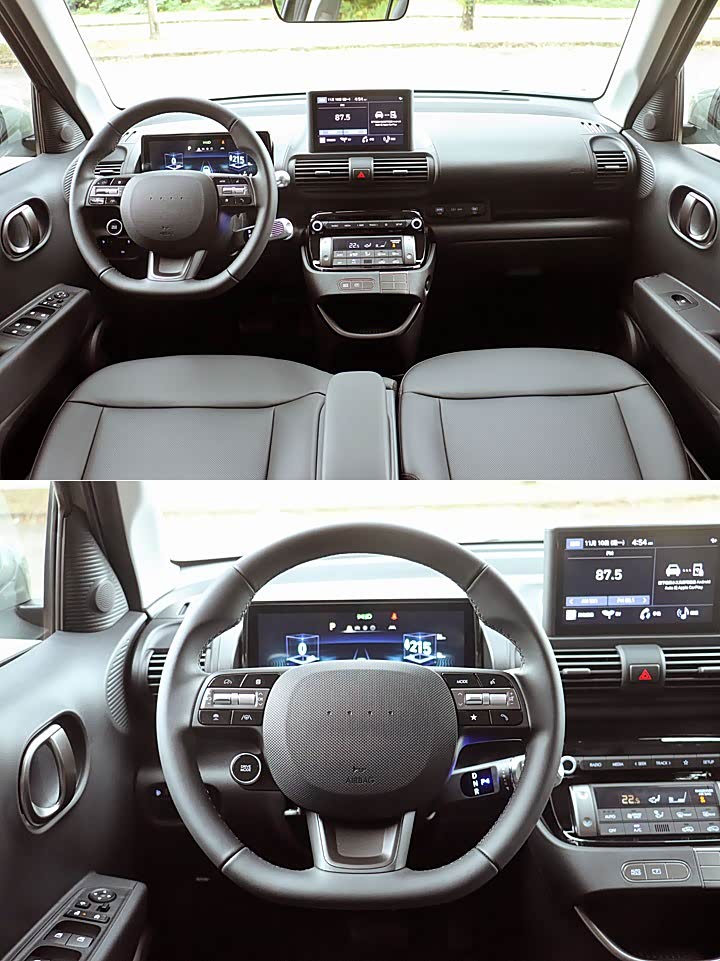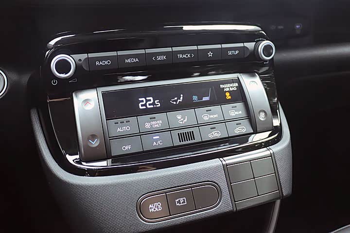 坐进车室内,现代Inster 车系给人的第一印象,便是驾驶座与副驾驶座的位置相当接近,主要原因在于其较窄的车宽设定,不过在中阶以上车型仍具备了前中央扶手的设定,下方则以驾驶座椅向副驾位置延伸,并拥有两个开放式的置杯架设定。此外恒温空调面板下方亦具备两个大型开放式的置物空间。