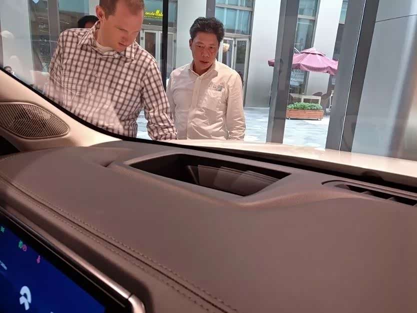 左侧“FOUNDERS EDITION”铭牌强调了它是蔚来ES8的创世版车型。店内工作人员告诉咖哥,最初生产的10000辆创世版蔚来ES8已经全部订出,并即将交车。