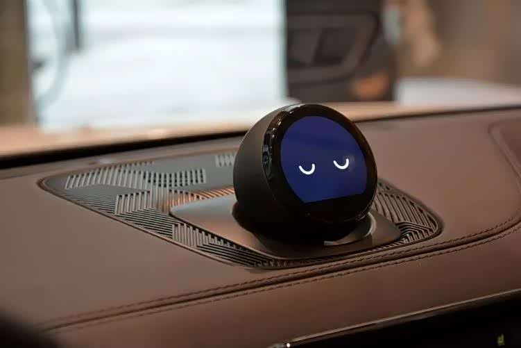 把视线向右移则是Nomi人工智能助手,咖哥在拍摄时,Nomi正处于待机状态,圆圆的脑袋、慵懒的表情让Nomi看起来颇为可爱,而在工作时它会调皮地左右上下运动,表情也可以实时变化。