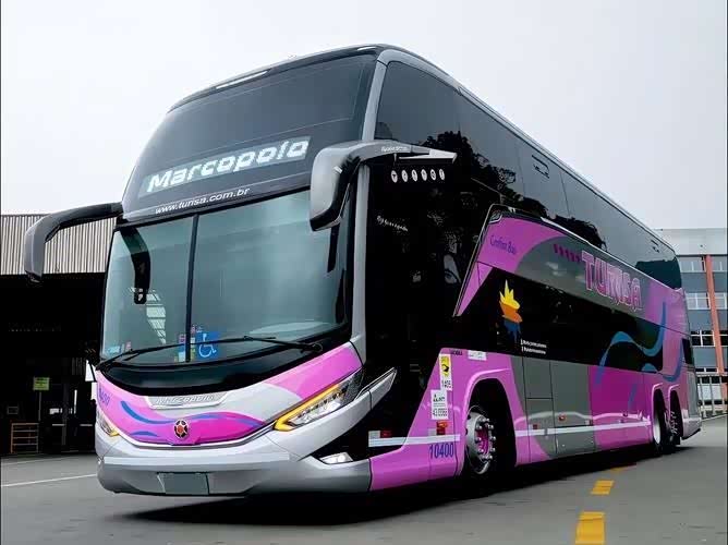 首先,让我们关注一款尺寸惊人的8×4双层客车。这款客车外宽2.55米,总长15米,高达4米。它采用双后桥驱动和双前轴转向,驱动桥车轮配备双胎,而转向轴车轮则为单胎。其发动机最大功率达到309千瓦(420马力),最高行驶速度可达125公里/小时,最大总质量限制在32吨。这款客车的内部布局十分独特:上层全为座位区,每排设有4个座位,除去两个楼梯的空间,共可容纳98名乘客。下层则包括驾驶区、发动机舱、两个卫生间、冷热饮水机以及储物柜等生活设施,并额外设有40个座位。这款客车拥有世界上最大的单一车体载客量,堪称客车界的巨无霸。