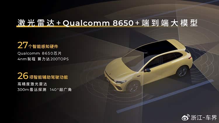 辅助驾驶方面,零跑Lafa5搭载含激光雷达在内的27个高精度感知硬件与高通8650芯片,支持端到端辅助驾驶,可实现高速领航辅助(NAP)、通勤领航辅助(CNAP),可以不依赖高精地图,实现领航辅助驾驶,未来将通过OTA实现城区领航辅助。
