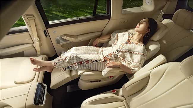 六座版堪称移动的舒适三居室。其前排935mm、二排900mm、三排840mm的优越乘坐空间,彻底终结了第三排“应急小板凳”的尴尬,330mm的三排坐姿高度确保了所有乘客都拥有通透的视野。纯平地板与隐藏式滑轨设计,让老人与孩童都能从容优雅地进出第三排。其“百变座椅模式”更是点睛之笔:第一、二排座椅可连接拼成一张1950mm的大床,而将第三排折叠后,更能与后备箱形成一个1437mm的平整空间,无论是长途行车中的小憩,还是周末露营的放松,都能轻松满足。