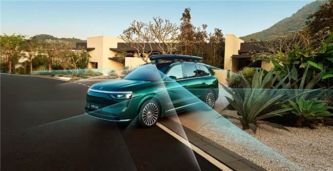 其核心在于构建了 “感知-决策-执行”全链路智能防护。车身遍布的30个高精度传感器,如同为车辆装上了无死角的“感知神经网络”。其中,192线激光雷达的探测距离高达250米,配合后向高精度固态激光雷达,即便是路面上难以察觉的沟渠或低矮障碍物,也能被精准捕捉。