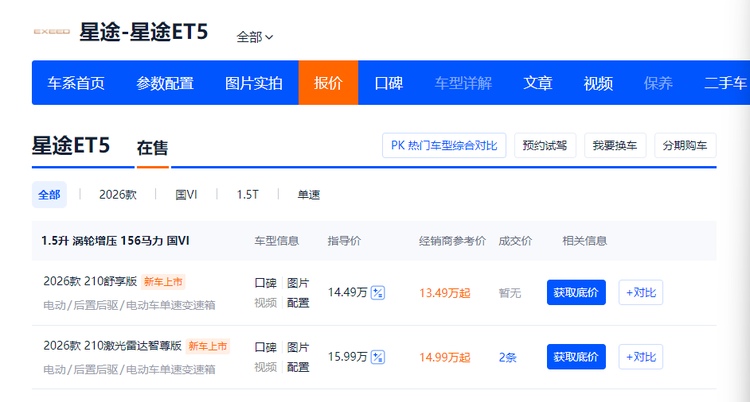 11月28日 星途ET5(参数|询价)正式上市,官方公布的指导价区间为14.49-15.99万元,该价格信息在多个汽车垂直平台及车友交流群引发广泛讨论。为一个手握15万左右预算、在同级车型里挑了小半年的准车主,我第一时间翻遍了配置表、对比了竞品,还找去线下店体验了实车后发现,其市场热度并非单纯依赖价格优势,更源于核心配置与家用需求的匹配度。接下来,让我们一起来实测一下这款新车型表现如何?