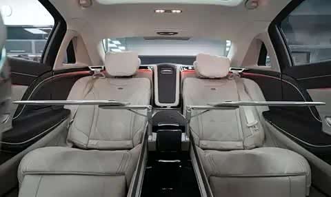车辆的内饰顶棚和天窗卷帘采用了翻毛皮或真皮材质,并额外配备了柏林饰板。如果不是特别专业的人士观察,很容易误认为这是迈巴赫S680的内饰,因为整体视觉效果非常相似。