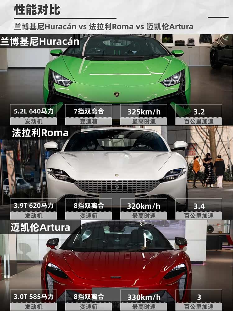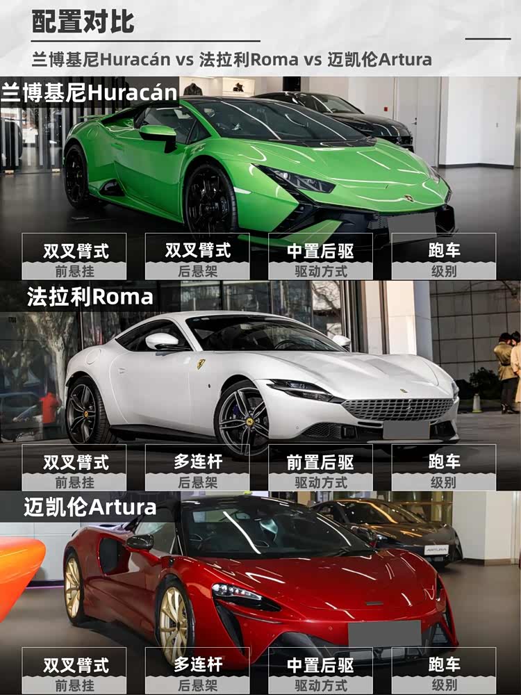 总结:要炸街选Huracán,要优雅选Roma,要黑科技选Artura!你会怎么选呢?