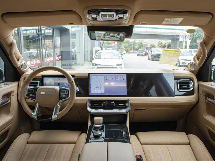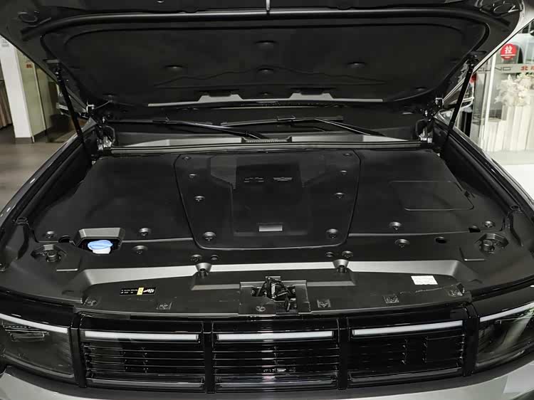 内饰配置丰富,配备10.25英寸全液晶仪表、双12.8英寸中控与副驾双联屏、1.92英寸启动按键屏、9英寸流媒体后视镜以及HUD抬头显示。作为非承载式硬派SUV,车内保留大量实体按键,方便越野场景下的操作。行政版内饰采用全新深灰色配色,全车座椅与车顶均使用翻毛皮质感材质包裹,同时新增后排座椅电动调节功能。
